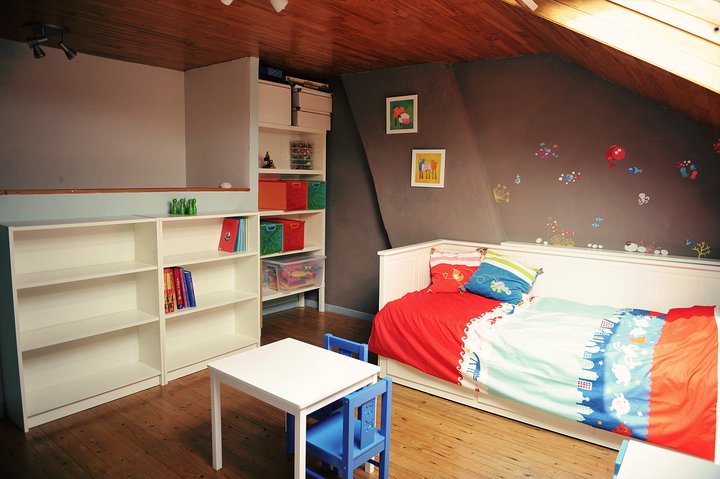 Haha on dirait la chambre de mon petit frère. Lui aussi sous le toit. Pour y avoir dormi, je me rappelle que les pluies nocturnes étaient horribles.