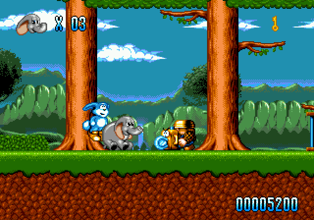 Force m’est d’admettre que les qualités visuelles de Rolo et ses ami souffrent assez vite d’un gameplay un peu moyen. Dès le début, graphismes et animations se montrent à la hauteur. Elephant, lapins, castors, écureuils sont soignés aux petits pixels. Les quelques ennemis que l’on rencontrent s’intègrent un peu moins dans le décors mais restent de bonne qualité…