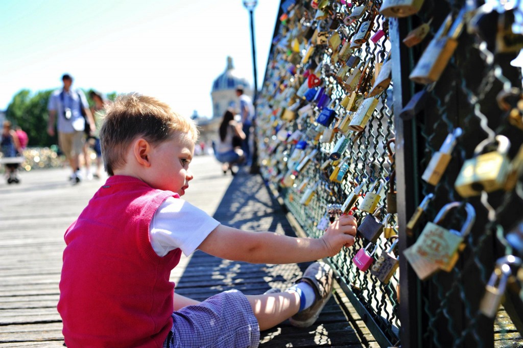 Nous reprenons alors notre petite balade après une pause boisson pour traverser le Pont des Arts où Charly a pu s’émerveiller de tous ces cadenas et où moi je me suis intrigué du drôle manège d’une bonne femme qui fait croire qu’elle trouve une bague par terre… je n’ai pas bien compris ce qu’il en retournait… Bref, après cette petite étape photos, nous poursuivons le long la Seine pour faire s’arrêter ensuite donner les goûtés aux filles sur une jolie place non loin de Notre Dame de Paris…