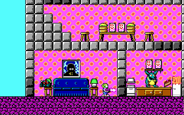 Ensemble, ils continueront donc à travailler en secret sur un jeu exploitant la puissance de la technique de scrolling de Carnack. En effet, cette dernière ne peut fonctionner sur un PC équipé d’une carte graphique CGA (4 couleurs), or les productions de SoftDisk doivent tourner sur les différents standards de l’époque. Mario allait donc laisser la place à Billy Blaze, un petit génie de 8 ans à peine qui a réussi à se construire un vaisseau spatial avec quelques boites de conserve et des bobines de plastique. Une fois sa baby-sitter endormie, il enfile le casque de Football et s’envole à bord de son Bean-with-Bacon Megarocket dans l’espace sauver la galaxie !
