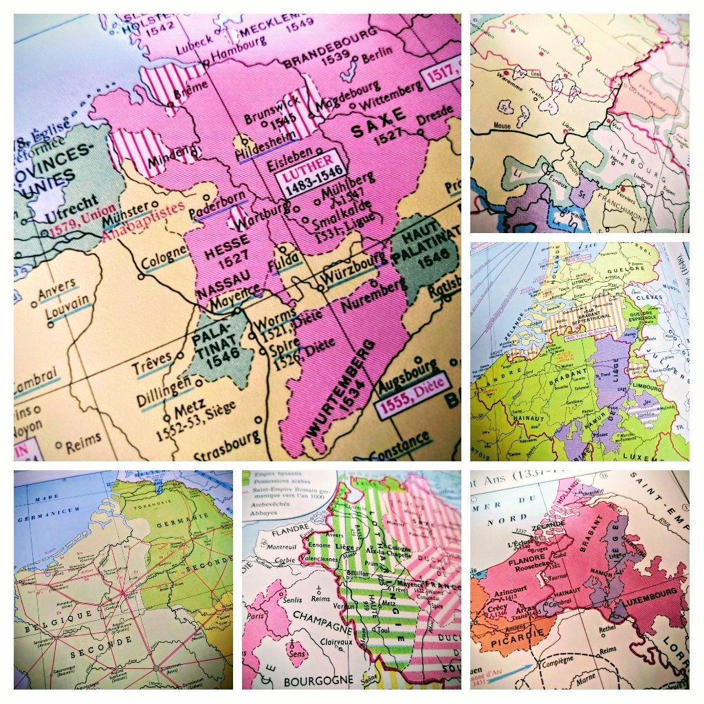 Ado, j’ai passé de longues heures le nez dans mon Atlas historique où déjà les cartes de l’histoire de Belgique me passionnaient tout particulièrement, tout comme mes cours d’histoire, de géographie, de latin et de grec… J’ai d’ailleurs longtemps eu cette envie d’être « Prof d’Histoire et Géographie » avant d’être découragé par certains enseignants… Ce qui ne m’a pas empêché au final de remplir mon horaire de compléments en géographie et histoire sociale dispensés, avec passion, par ma professeur Mme Lafosse.