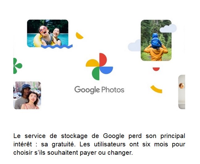 Après cinq ans de stockage gratuit et illimité en « haute qualité », Google siffle la fin de la récré. Le très populaire Google Photos changera de formule le 1er juin 2021. Ses utilisateurs bénéficieront désormais d’un espace de stockage gratuit de 15 Go. Au-delà de cette limite, il faudra payer, tout simplement. En réalité, c’est d’un changement plus profond qu’il s’agit puisque cet espace restreint concerna également Gmail, et l’ensemble des documents stockés sur Drive. Dès le 1er juin, il faudra donc mettre la main au porte-monnaie pour acheter du stockage supplémentaire via Google One. (A lire 01.net)