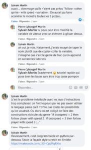 Par ailleurs, le frangin n’aura pas manqué de mettre son nez dans la couche « Scratch » pour améliorer les choses pour finalement constater qu’il est possible de visualiser le code en Python et réaliser une seconde version ;)