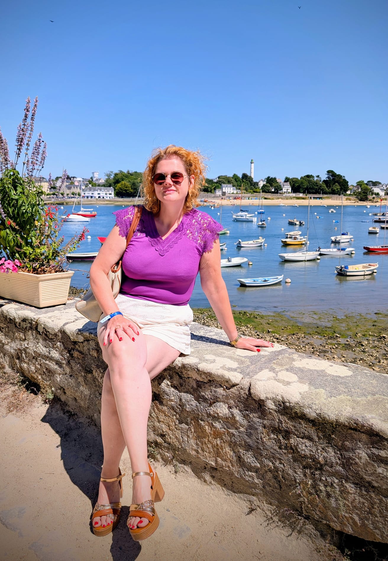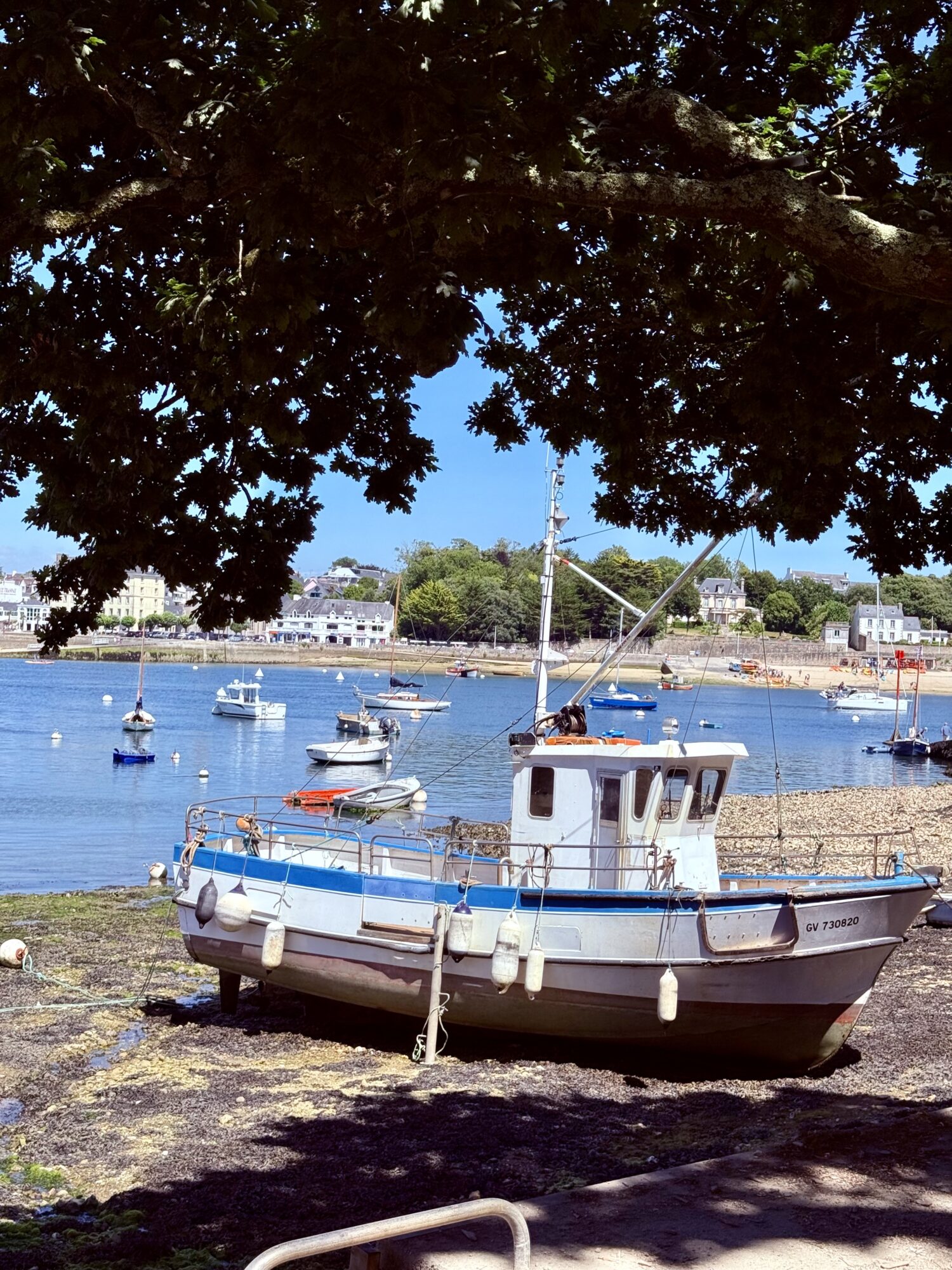 Depuis le port de Benodet, celui de Saint-Marine en face, ressemblait à une carte postale. Alors que les enfants ont leur grande journée au Camping, nous choisissons donc de partir en amoureux flâner le long de l’eau. Prendre apéro en bord de mer. Saint Marine n’est pas bien grande, il lui manquerait même l’une où l’autre petites échoppes, histoire de dire…