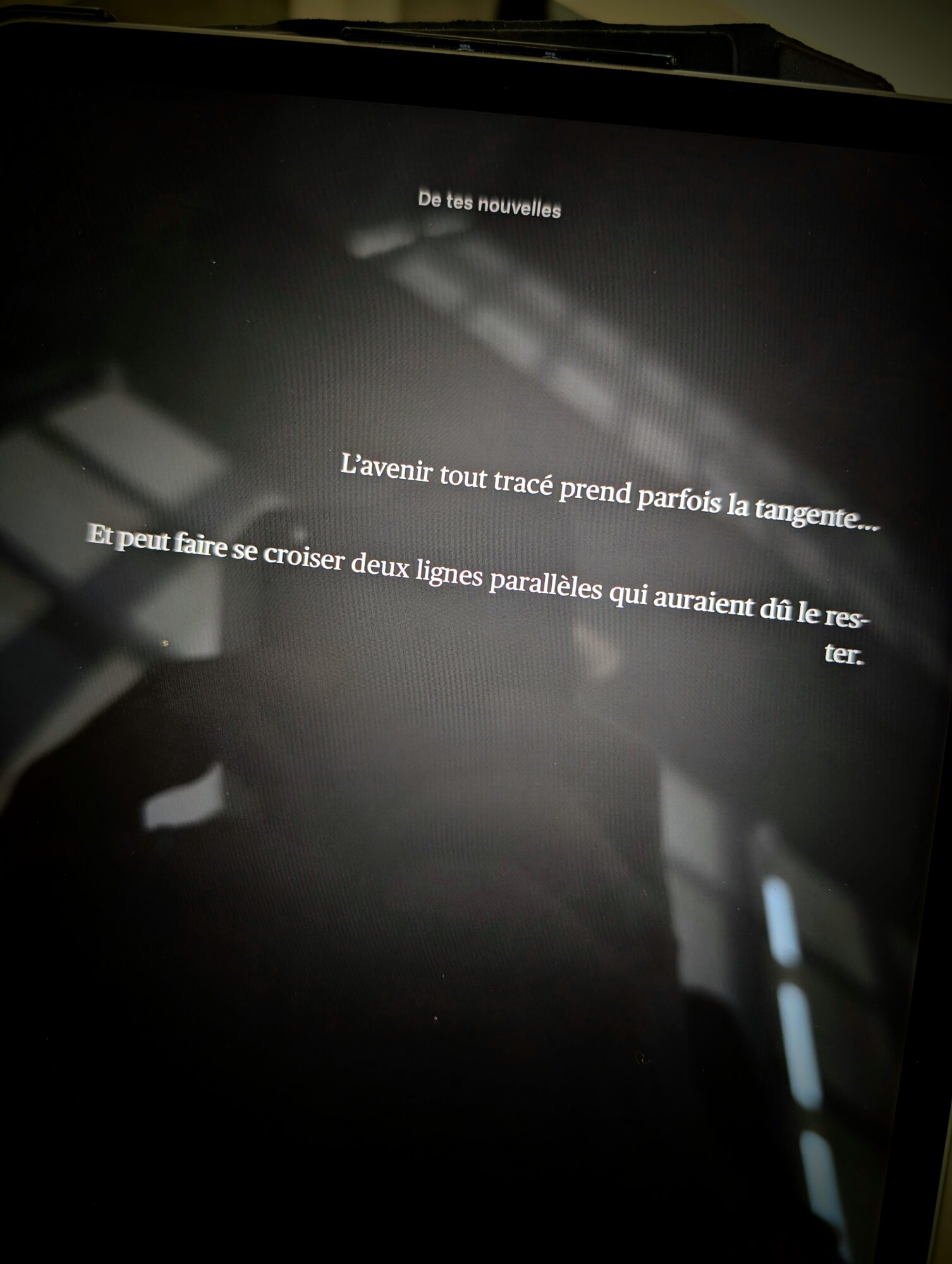 Reste ces quelques mots qui clôture le roman. Tout aussi fort que le premier et qui me font un petit clin d’oeil à la chanson que j’ai écrite il y a quelques mois — Nos mondes… Peut-être un peu, elle même inspiré de mes lectures.