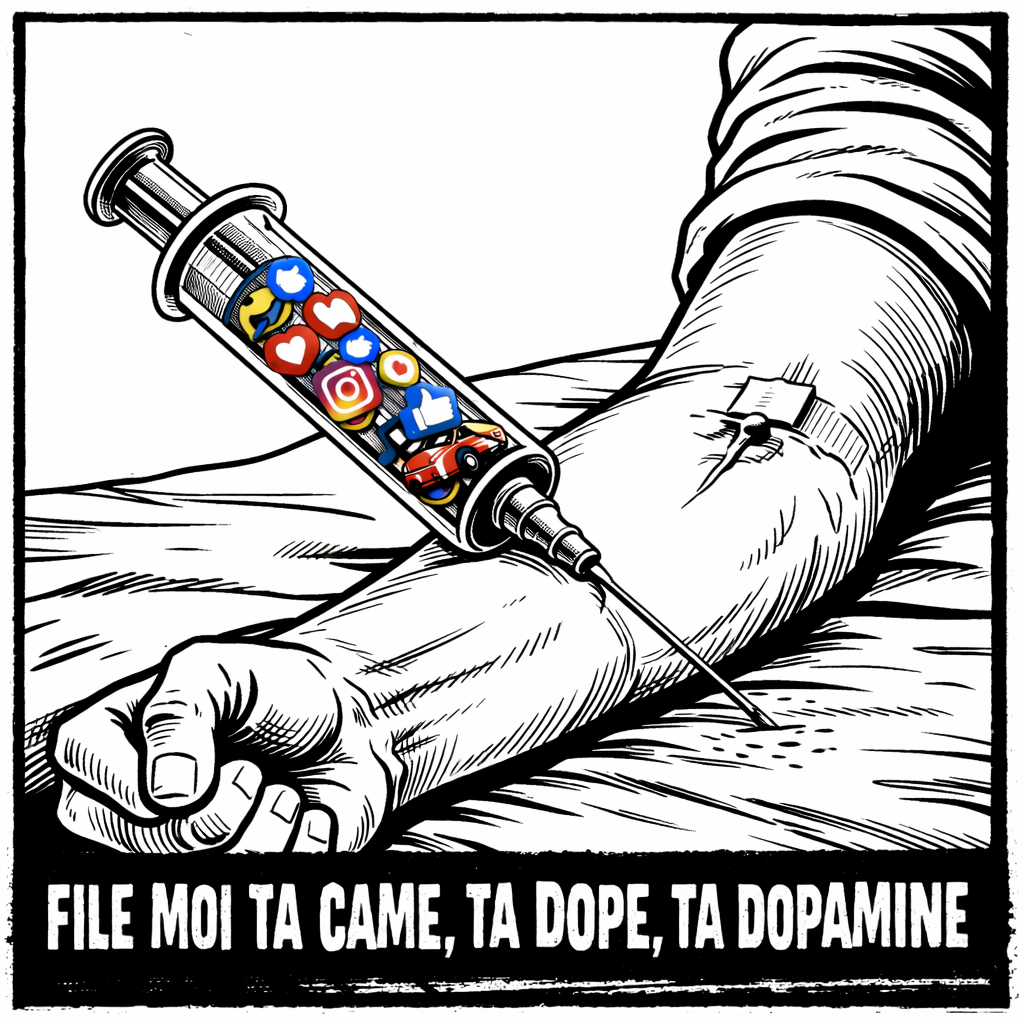 Un thème que j’avais en tête d’explorer depuis un moment d’ailleurs, puisque je réfléchissais déjà un à Cover-art dans ChatGPT autour d’un morceau plus « Rap » : « File moi ta came, ta dope, ta dopamine »… Pas si difficile à remettre en mode New Beat.