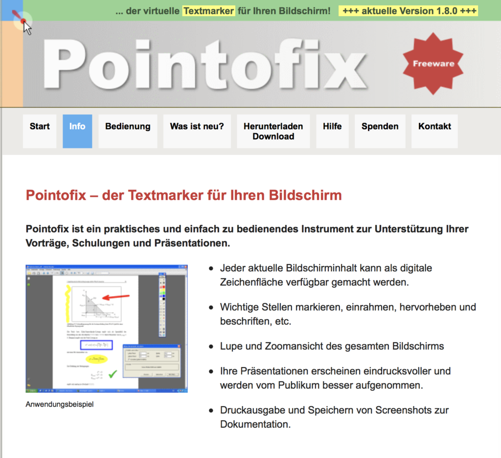 Chez nous, plus possible de mettre à jour le logiciel Smart sur les nouveaux ordinateur Apple et les machines sous Windows 8 et 10… j’ai donc trouvé au besoin un petit logiciel gratuit qui permet d’exploiter un Smartboard ou un écran interactif. Le logiciel est en allemand, mais il est efficace pour faire des annotations en direct sur votre écran, logiciel ou navigateur avec une tablette graphique ou éventuellement votre souris. >>> Pointofix.