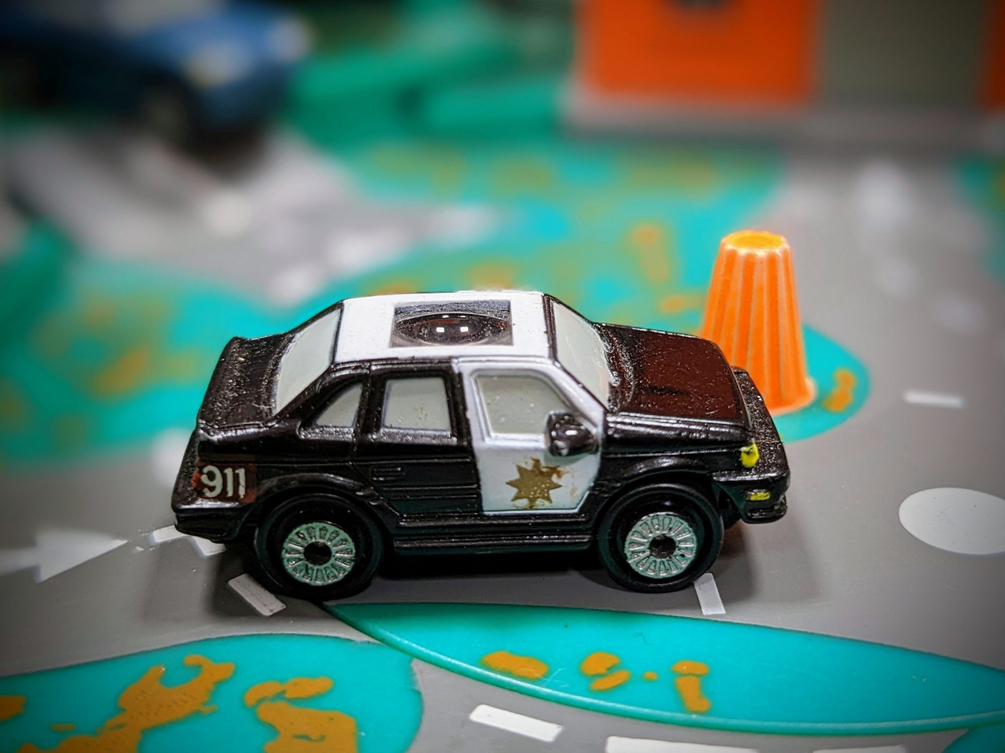 Voici les modèles de ma collection que je classe dans la catégorie « City », c’est à dire tous les véhicules de type Police, Ambulance, Pompier, véhicules de chantier, … C’était à l’époque des Micro Machines qui m’intéressaient très peu étant gamin, puisque je ne pouvais les intégrer dans des courses. Pourtant ils permettent aujourd’hui de créer tout un univers de villes !