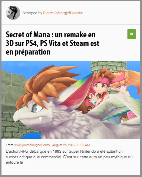 Et coté Remake, celui de Secret of Mana, initialement sorti au début des années 90 sur la Super Nintendo s’annonce plus qu’alléchant. Ce dernier devrait notamment être dispo sur PS4 en 2018.