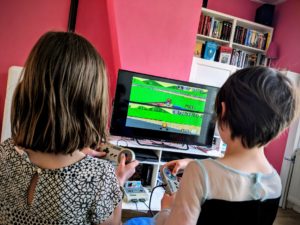 Sortir une veille console et des vieux jeux, cela fait toujours un peu d’animation. Les JulietteS s’affrontent à Super Mario Kart, on redécouvre les vieux pixels avec Matteo et Romeo et puis on approfondi le sujet avec Pype, de quoi mettre des images sur certaines de nos lectures communes aux éditions Pix’n Love, tel que La Guerre des Mascottes.