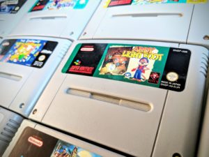 Si au jour d’aujourd’hui, j’ai pas mal de cartouches, je manque cruellement d’éléments pour envisager un shooting studio autour de la Super Nintendo. Les jeux étaient à l’époque distribuer dans une boite en carton, ce qui a rendu leur conservation plus rares que les boitiers « plastiques » à la sauce VHS des jeux Megadrive. Magasines, posters ou même boite de consoles sont également difficile à trouver.